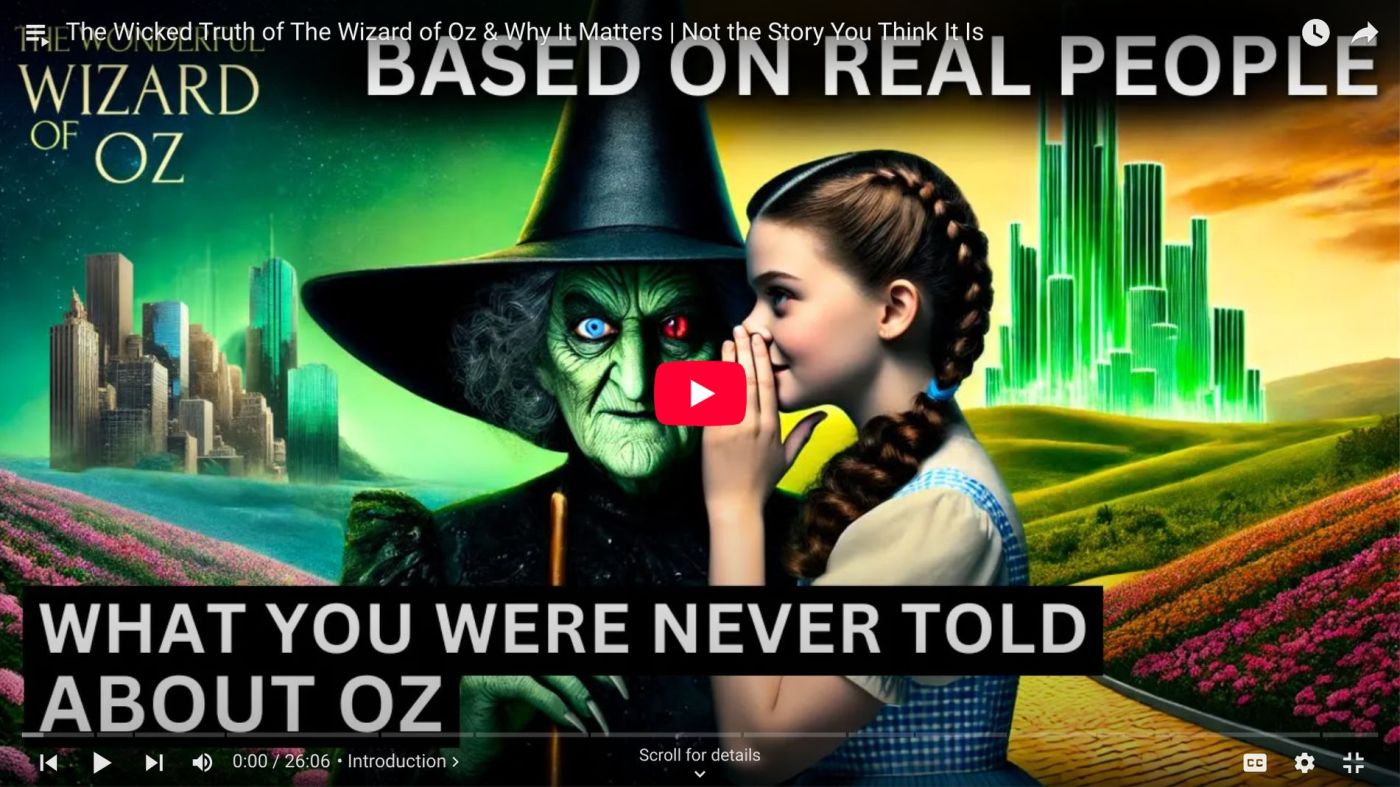 “This story isn’t just about Dorothy finding her way home, it’s about all of us waking up to reality. Discover the Wicked Truth Behind The Wonderful Wizard of Oz. A story far darker than Hollywood ever revealed. The dark history of Oz is filled with real-world allegories and shocking truths. This isn’t just a fairy tale, it’s a cautionary tale about power, control, and the illusion of freedom.